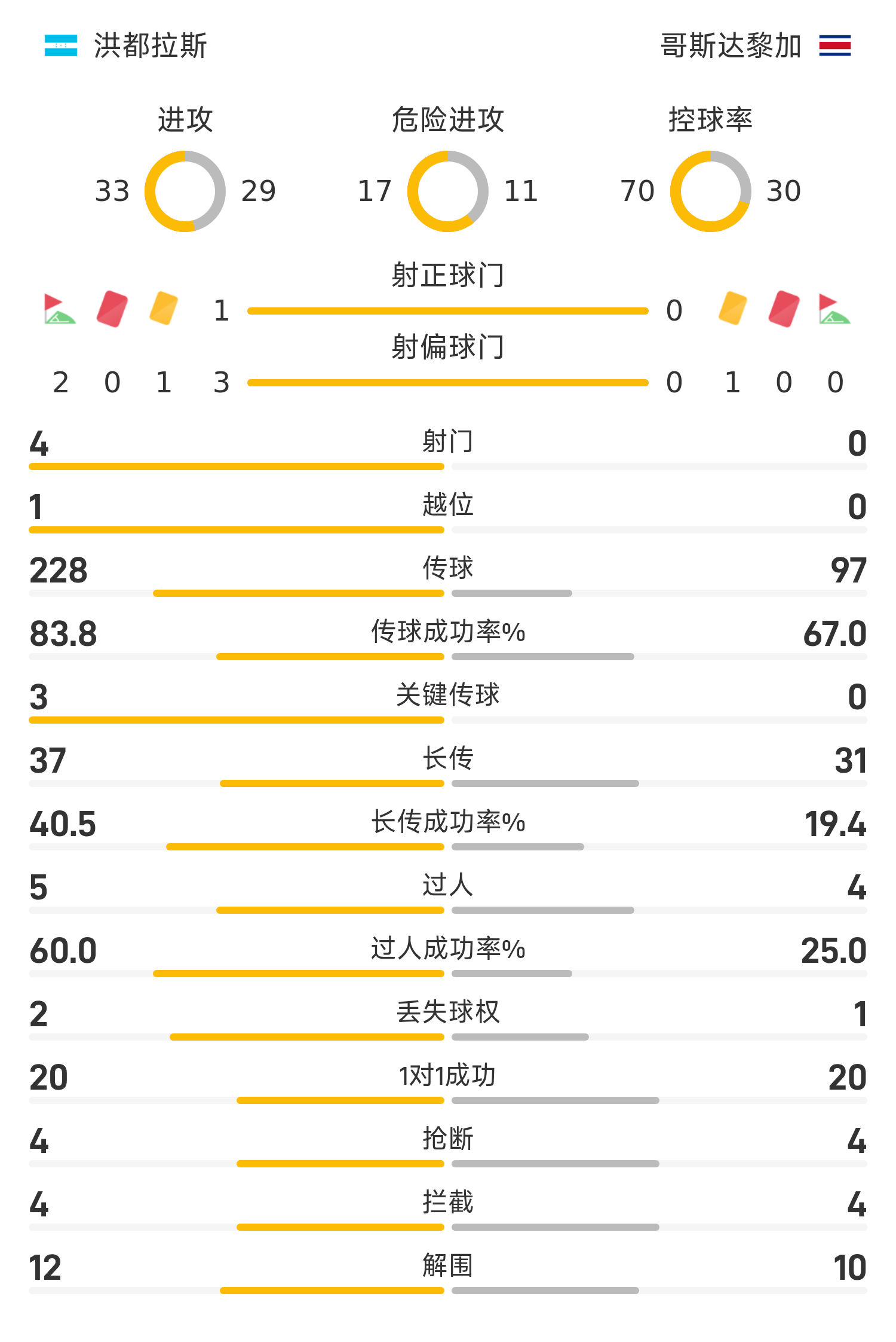 哥斯达黎加首发阵容:1-纳瓦斯、15-卡尔沃、19-沃斯顿、6-甘博亚、4-巴尔加斯、3-米切尔、2-穆里略、14-卡尔德龙、9-乌加尔德、10-阿尔科塞尔、12-马丁内斯